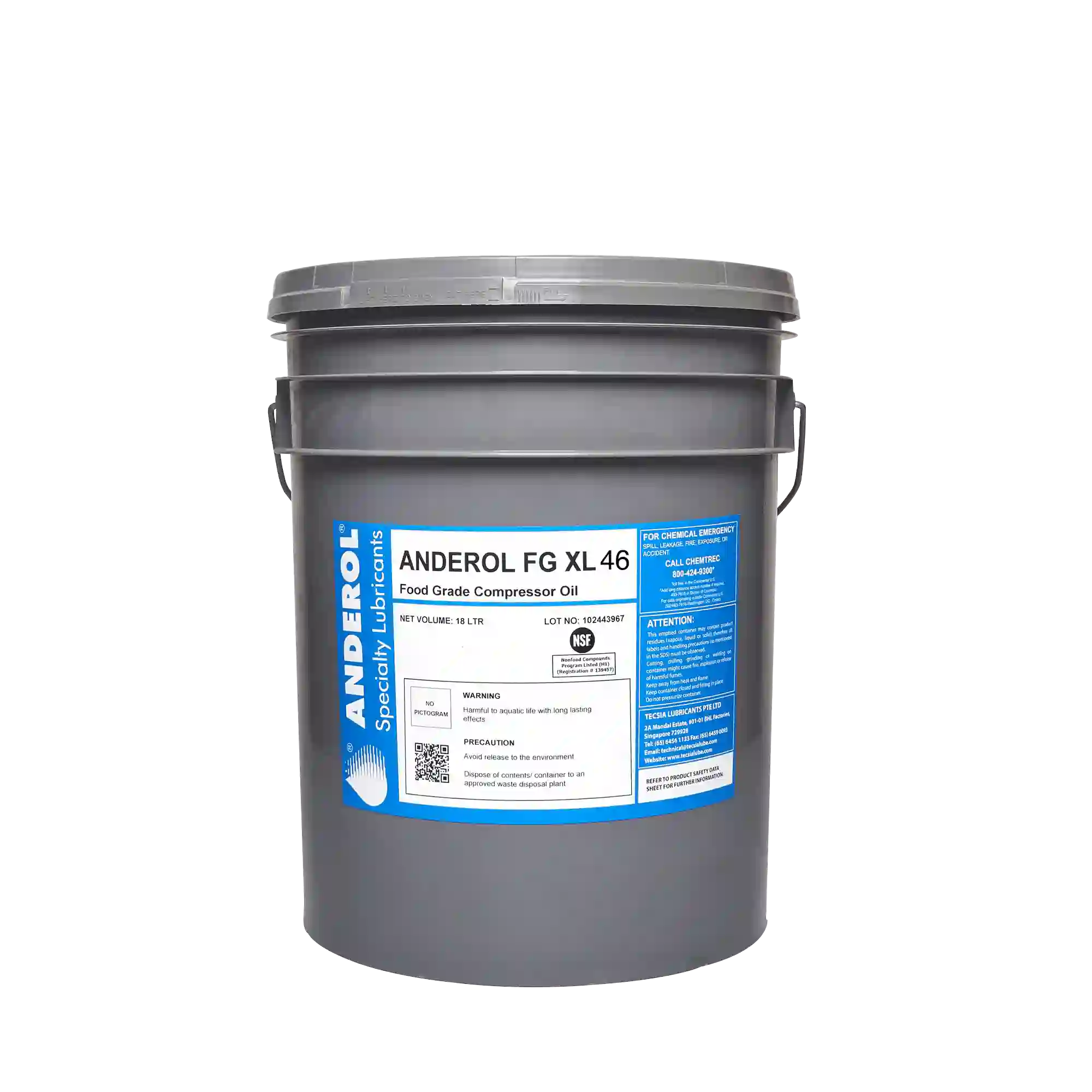 Anderol FG 46 یک روغن صنعتی فودگرید (Food Grade) با گرید ویسکوزیته ISO VG 46 است که برای استفاده در صنایع غذایی، دارویی و بهداشتی طراحی شده است. این محصول دارای گواهی NSF H1 بوده و برای کاربردهایی که احتمال تماس تصادفی با مواد غذایی وجود دارد، کاملاً ایمن است.